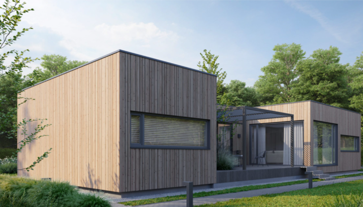 The Plus is 128,52m² LYFIO modular house, which consists of 5 modules. The house is designed with three bedrooms, two bathrooms, a utility room and a particularly spacious living room. The house fully satisfies the needs of even the most demanding customers. Just like all the houses we design, this one meets the requirements of the A++ energy class, so you don’t have to worry about the high maintenance costs of the house.