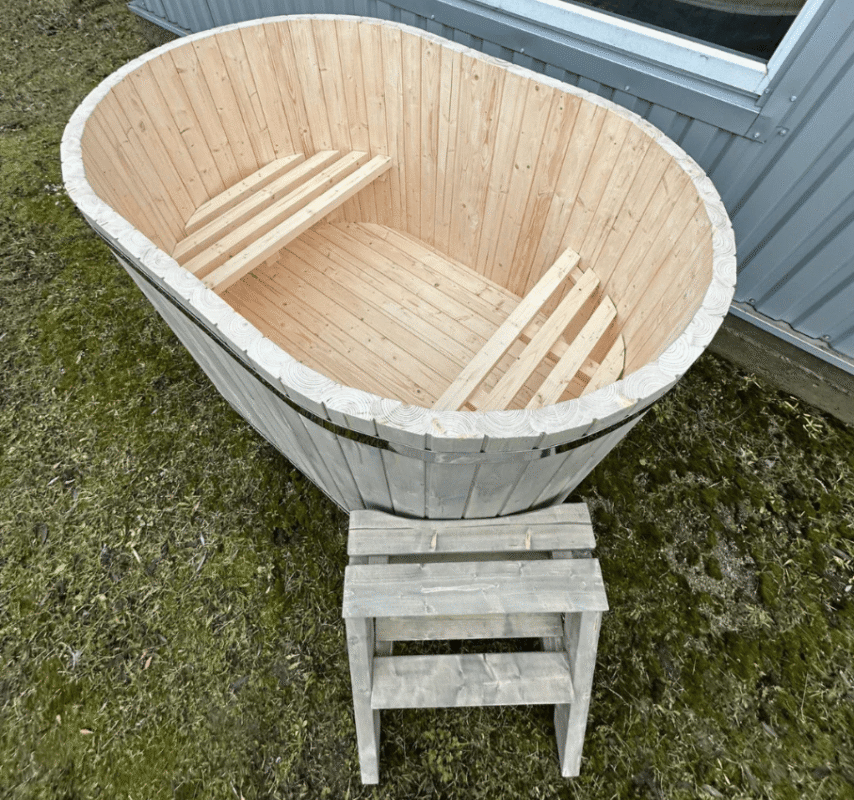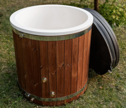 The Iglu M 350×230 is a compact barrel sauna with an anteroom whose shape is reminiscent of a traditional igloo – ideal for anyone looking for a space-saving outdoor sauna with a special design. The curved roof ensures optimum heat circulation and gives the sauna a modern, Nordic-inspired appearance.